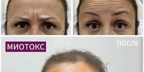 Результат инъекций ботулотоксина Миотокс в зону лба, межбровья и вокруг глаз