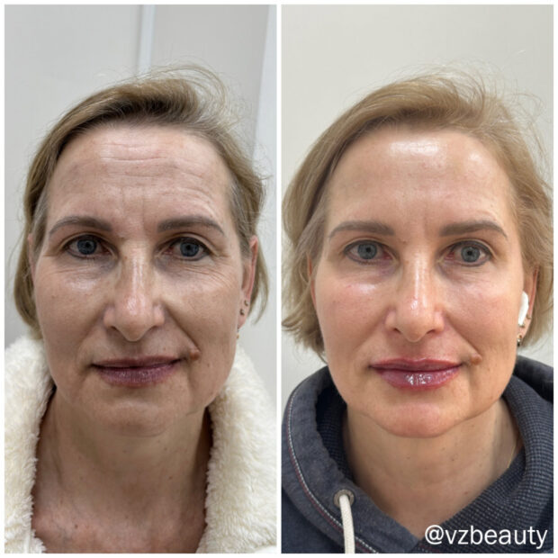 На фото до видна активная мимика — пациентка легко может нахмурить брови и собрать лоб «гармошкой». Видео «после» снято спустя 3 месяца с момента инъекций ботулотоксина. Немного появилась подвижность в зоне межбровья, на лбу морщинки не образуются, «гармошки» нет, но брови несколько подвижны, что придает лицу живости, естественности В целом у этой пациентки очень хорошо…
