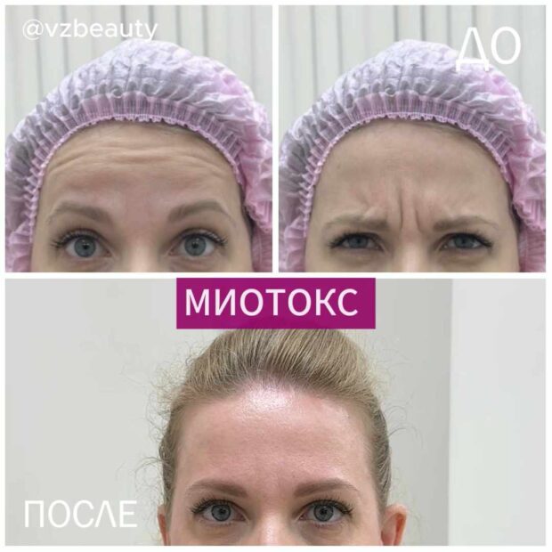 Результат инъекций ботулотоксина «миотокс» в зону лба и межбровья