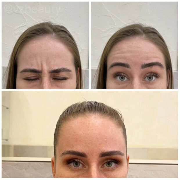 Результат инъекций ботулотоксина «миотокс» в зону лба и межбровья
