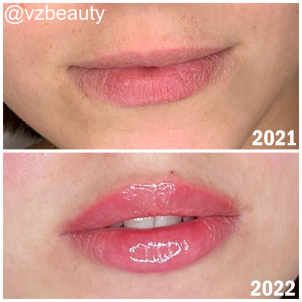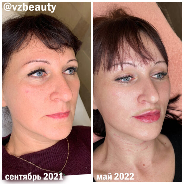 Моделирование губ гиалуроновым филером Ювидерм смайл.С данной пациенткой мы знакомы около двух лет, и за это время мы провели 4 процедуры, на каждой из которых было введено по 0,55 мл филера в губы. Встречались мы примерно раз в полгода. На фото представлен сравнительный результат — до введения филеров и через 2 года (после 4 процедур)…